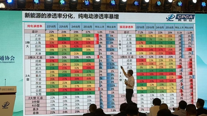 乘联会10月销量快报显示,新能车零售渗透率58.7%创历史新高,但插混零售同比-10.3%,增程同比-7.7%,而纯电保持同比+20%强势增长。